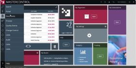 MasterControl is an electronic quality management system (eQMS) that allows bioscience firms to eliminate paper-based quality processes, and observe regulative standards. With MasterControl, organizations will improve on compliance with government agency rules and ISO quality standards, whereas increasing producing potency and products quality.